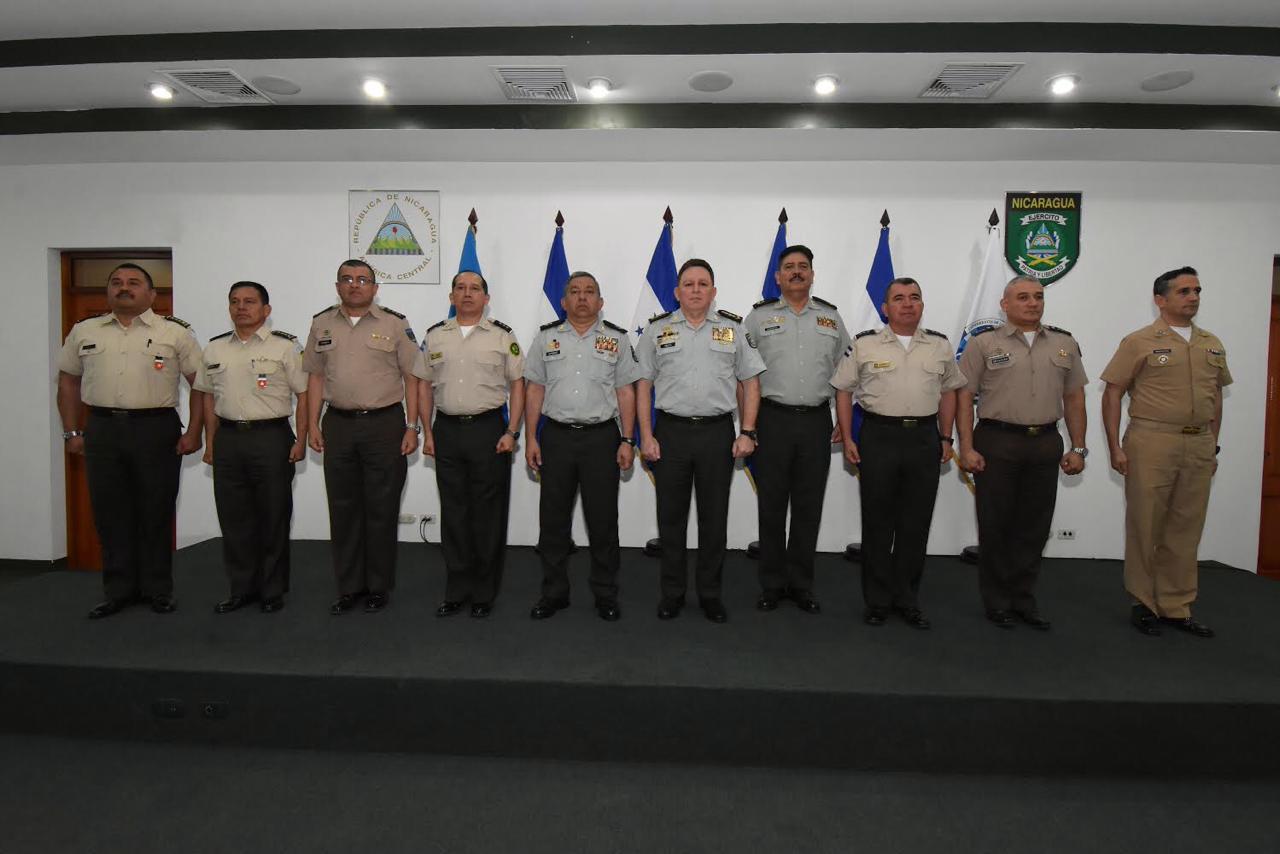 En esta reunión participan, por el Ejército de Nicaragua, el General de Brigada Leonel José Gutiérrez López, jefe de la Dirección de Inteligencia y Contra Inteligencia Militar, y el General de Brigada Juan José Membreño López, jefe de la Dirección de Operaciones y Planes.
