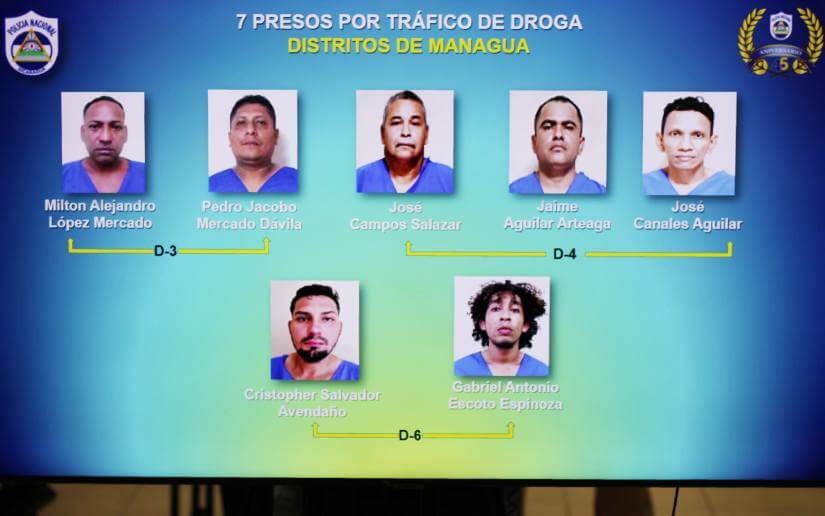 «En estado de ebriedad y motivado por las rencillas agredió con arma cortopunzante, es decir, machete a la víctima, ocasionándole la muerte», detalló. Vanegas señaló que fueron apresadas 7 personas por tráfico de droga en los distritos de Managua, Milton Alejandro López Mercado, Pedro Jacobo Mercado Dávila, José Campos Salazar, Jaime Aguilar Arteaga, José Canales Aguilar, Cristopher Salvador Avendaño y Gabriel Antonio Escoto Espinoza.